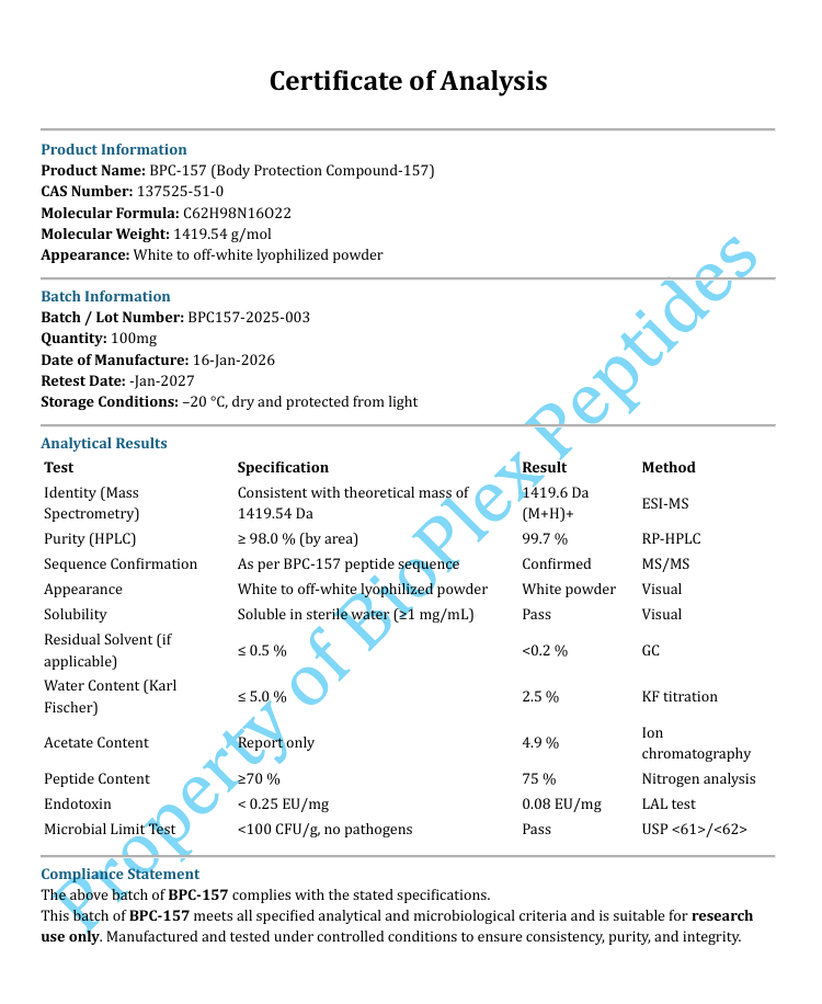 Due to the specialised and perishable nature of our research peptide products, BioPlex Peptides does not offer general refunds or accept returns once an order has been shipped. All purchases are considered final unless they meet specific criteria outlined below.
