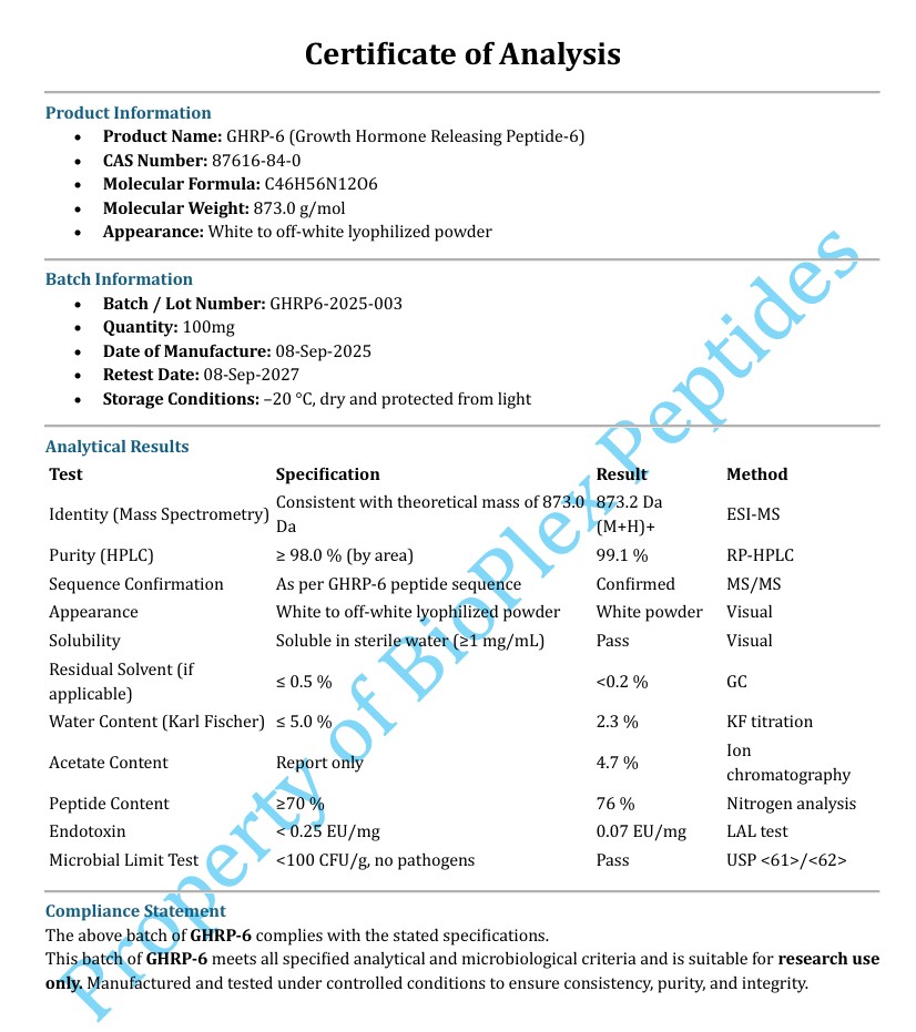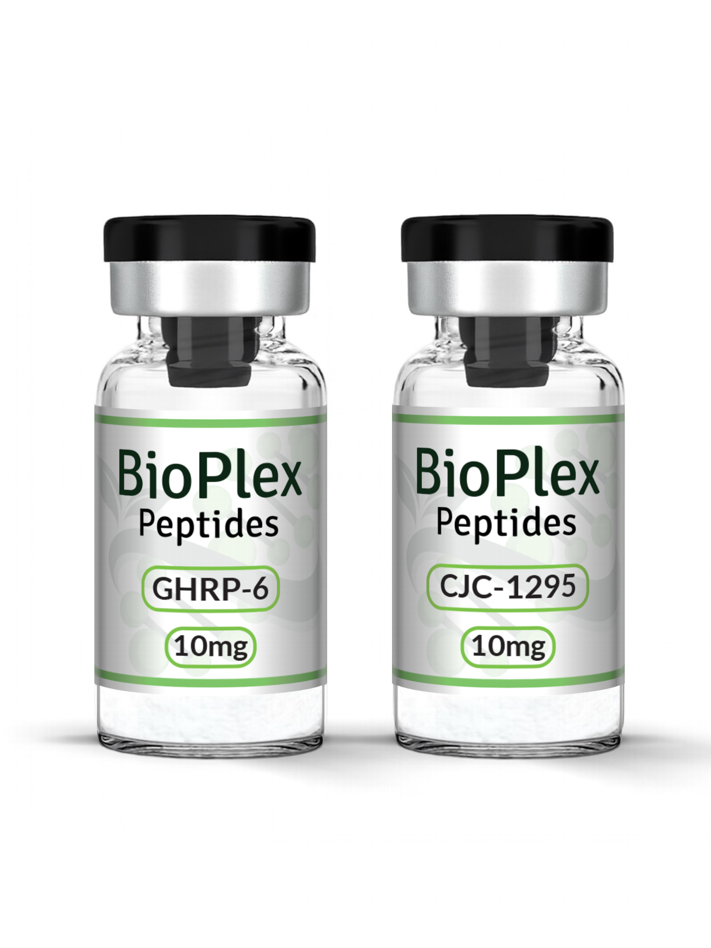 CJC-1295 & GHRP-6 are peptides studied for their synergistic effects on growth hormone regulation. CJC-1295 is a GHRH is researched for prolong GH release, while GHRP-6 is researched for its ghrelin receptors to trigger GH secretion. Together, they’re researched in models of cellular recovery, metabolic function, and age related decline, offering insights into endocrine modulation and regenerative biology.