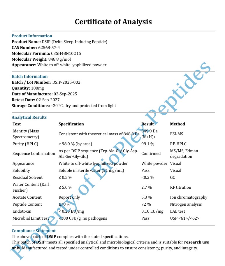 DSIP is a neuroactive research peptide studied for its role in sleep related signalling, circadian rhythm regulation, and central nervous system communication. In laboratory models it is examined for its involvement in neurochemical balance, adaptive stress signalling, and physiological recovery processes associated with rest states. DSIP is valued in research environments for its multi pathway interaction profile, making it suitable for advanced studies exploring sleep architecture.
