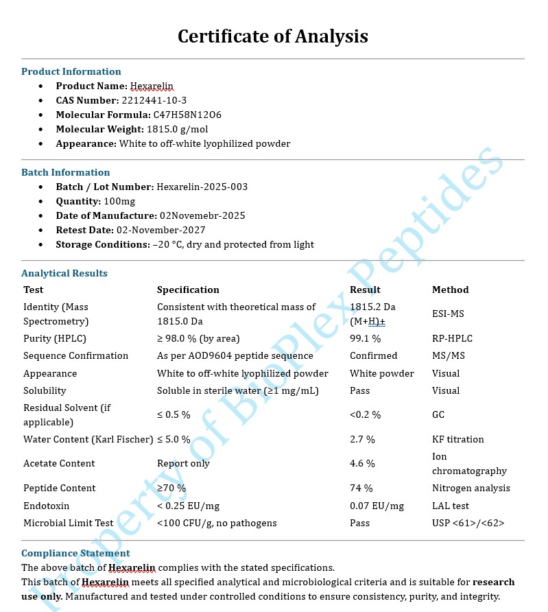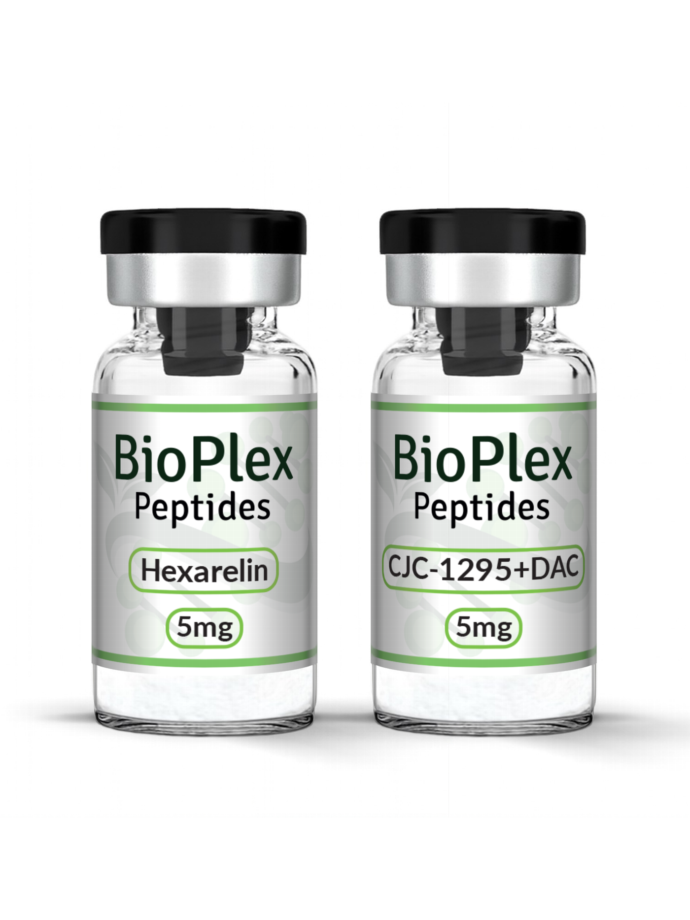 Hexarelin and CJC-1295+DAC is a peptide set used to study growth hormone axis signalling in vitro. Hexarelin is researched as a ghrelin receptor agonist, while CJC-1295+DAC is investigated as a long acting GHRH analogue. Together, they are evaluated in matched cell based assays to compare pathway activation, temporal response profiles, and downstream cAMP and calcium readouts. This pairing supports assay optimisation, potency profiling, analytical verification, and robust control comparisons