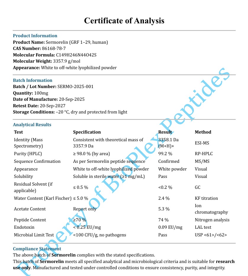 Sermorelin is a peptide analogue of growth hormone releasing hormone (GHRH), consisting of the first 29 amino acids of the endogenous sequence. It is structurally designed to mimic the natural signal that initiates GHR. GHRP-2 (Growth Hormone Releasing Peptide-2) is a hexapeptide that belongs to the ghrelin mimetic class, engineered to interact with specific receptors involved in endocrine signaling. Both are research peptides with distinct amino acid compositions and molecular targets.